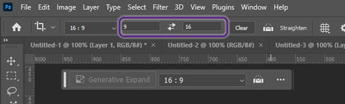 ۲- کادر کراپ دور تصویر ایجاد میشود. برای رعایت نسبت ابعاد تصاویر در فتوشاپ در نوار بالا مطابق تصویر زیر نسبت طول و عرض ۹:۱۶ رو وارد میکنیم. کادر ایجاد شده رو به صورت دلخواه تغییر میدیم.